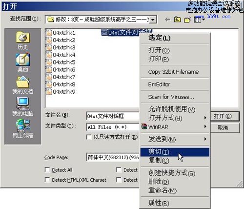 在文件對(duì)話框中右擊選中的文件,(如圖1)所示,是不是出了多了一個(gè)粗體顯示的“選定”項(xiàng)目外,其余的命令都與資源管理器中的右擊一樣呢,刪除、復(fù)制、粘貼文件都可以在這里進(jìn)行。