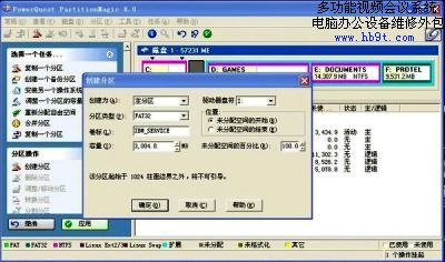 點(diǎn)擊確定,此時可以看到C分區(qū)后面出現(xiàn)了一個未分配的區(qū)域。在此未分配的區(qū)域上點(diǎn)擊鼠標(biāo)右鍵,選擇創(chuàng)建,彈出一個創(chuàng)建分區(qū)窗口。在創(chuàng)建為選擇主分區(qū)、分區(qū)類型選擇FAT32、卷標(biāo)中輸入IBM_SERVICE、容量里輸入3000MB、驅(qū)動器盤符選擇缺省配置。在這里說明兩點(diǎn),必需得創(chuàng)建成主分區(qū),否則此分區(qū)無法啟動。卷標(biāo)名稱也不能有錯,否則F11的程序?qū)⒄也坏较鄳?yīng)文件。